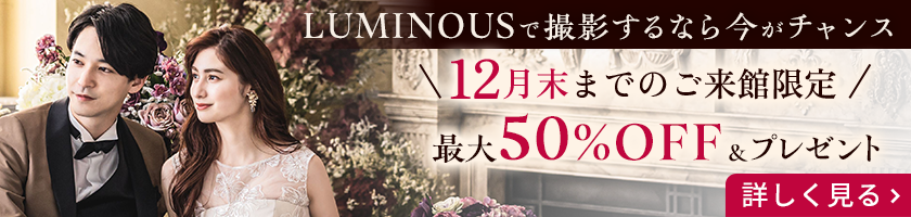 ¥121,000 →¥99,000 ・和装&洋装グランスタジオプラン ¥354,200 →¥177,100 全プランオプション込み ※全て税込価格 |